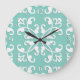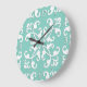 Lacy cutwork - weiß über Meeresgrün Große Wanduhr
