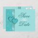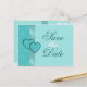 Ein Imitat mit türkisfarbenem Band zeichnet sich durch einen schönen Ton auf türkisfarbenem Damast-Muster und ein kräftiges hellblau-grün auf der Vorderseite dieser romantischen Ankündigung Datum freihalten Postkarte aus. Zwei Lieben Herzen in der gleichen Damast und in dunkelblau-grün Spitze besticht das Band. Alle anpassbaren Texte können leicht an Ihre eigenen Bedürfnisse angepasst werden.