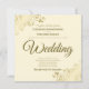 Die Einladung zur Hochzeit beinhaltet eine Elfenbeincreme oder einen cremefarbenen Hintergrund mit lackierten Imitaten, goldenen Gürteln und Wirbel in den Ecken. Die Formulierung ist formell mit elegantem Drehbuch Goldschrift.