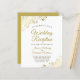 Diese preisgünstigen Einladungen sind für Gäste konzipiert, die zur Hochzeitsfeier eingeladen sind, aber nicht zur Zeremonie. Das Design ist weiß mit verzierten goldfarbenen Wandfalten in den Ecken. Die Typografie beinhaltet extravagante Schriftzeichen für einen Stil, der gleichzeitig einfach und elegant ist. Die perfekte Wahl für Eleganz, Klasse, Stil und Schönheit auf einem Budget.