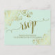 Lacy Gold Calligraphy Pale Mint Green Wedding RSVP Postkarte