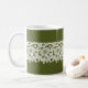 Antiquitätenmuster in Weiß und Ekru auf grünem Hintergrund