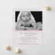 Hübsche Ankündigung von Kindergeburtshilfen für Fotos in weißer und rosa Farbe. Ein individuelles Baby-Foto schmückt die Oberseite der Flachkarte, darunter eine dekorative rosa Jakobsmuschel. Dunkelgrauer Text ist bereit, mit den Geburtsinformationen Ihres Babys zu personalisieren. Die nette und stilvolle Art, die Ankunft Ihres kleinen Mädchens, zu Freunden und Familie anzukündigen.