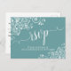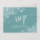 Lacy White Calligraphy on Aquamarin Wedding RSVP Postkarte