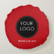 Laden Sie Ihr Logo in dieses festliche Feiertag personalisiertes rundes Kissen in Weihnachtsrot. Einfache Bearbeitung von Ideen für Unternehmen, Unternehmen und Kunden mit Ihrem Logo. Werben Sie Ihr Geschäft, Ihr Unternehmen, speichern Sie mit Ihren eigenen Waren und freuen Sie sich über Ihre Kunden, Geschäftspartner, Mitarbeiter.
