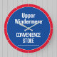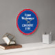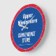 Wall-Uhr für einen Dorfladen, lokale Geschäfte, Convenience Store oder Retail Outlet. Bearbeiten Sie das Design, um die Formulierung in Anzug zu ändern. Blau und Rot.