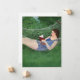 Das Bild auf dieser Karte ist eine Dame, die ein Buch liest und sich in einer Hängematte entspannt.