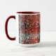Imagem de pequenos quadrados tipo pixel que lembram uma parede de ladrilhos ou cerâmica vermelho, porém, com muitas manchas e pequenos respingos que parecem manchas e borrões de tinta spray.
