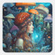 Lady and Mushrooms Surreal Fantasy Art Quadratischer Aufkleber