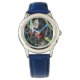 Kinderuhr aus Edelstahl mit blauem Lederarmband