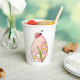 Eine Dame käfelt auf einem verzierten Ostereier. Dieses Design ist wirklich effektiv für diese Papieraufnahmen