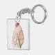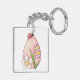 Eine Dame käfelt auf einem verzierten Ostereier. Dieses Design wirkt auf diesem Schlüsselanhänger wirklich effektiv