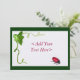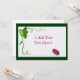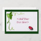 Auf der Vorderseite der Einladung befindet sich ein grünes Blatt und ein roter Damenbug. Passen Sie diese Einladung mit Ihren eigenen Informationen an.