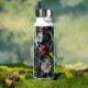 Eine Wasserflasche mit einem Foto eines Damenbugs.