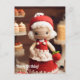 Passen Sie den Text an, wenn Sie ihn gewollt oder nur behalten haben. Garne und Freunde - die perfekte Kombination! Grüße von Freunden und Kollegen. Niedliche Häkelin mit rotem Hut. Rotes und rotes Kleid.. Cookies und Kuchen auf Regalen, Erdbeere oder Apfel in der Hand.