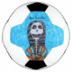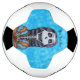 Dieser Fußball hat eine lächelnde Lady Day of the Dead Skelett mit langen schwarzen Haaren, die eine orange und blaue Kapelle tragen, die auf einem gemusterten, leuchtend aquablau leuchtenden Hintergrund einen Strauß weißer Blume trägt. Passen Sie Ihren Text mit der Vorlage an.