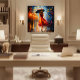 Treten Sie ein in eine Welt, in der lebendige Farben mit dem Rhythmus des Regens tanzen und das Wesen eines Augenblicks in der Zeit erfassen. In dieser faszinierenden Szene navigiert eine Figur anmutig durch den Regen, umgeben von einem Kaleidoskop von Farben, die die Leinwand erhellen.