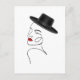 Lady in Black Hat mit Red Lips Line Art Postkarte