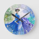 Lady in Blue Dress - Aquarellmalerei Runde Wanduhr