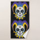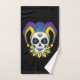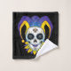 Mit diesem farbenfrohen Lady Jester Schädel mit Lilie, Juwelen und Herz bereiten Sie sich auf Ihr Mardi Gras Party vor.