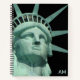 Lady Liberty und Monogramm auf schwarz. Ein hellblauer Stern auf der Rückseite.