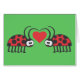 Adorable Ladybugs, die in Liebe sind. Ihre Antennen berühren sich in Form eines Herzens mit einem darunter liegenden Herz. Sehr niedlich und lustig für den Valentinstag oder jeden Tag.
