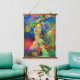 Eine lebendige Figur ist mit einer kunstvollen Reihe von Blume auf dem Kopf geschmückt, umgeben von wirbelnden und lebendigen bunten Motiven. Die auffallende Komposition verbindet natürliche Elemente mit abstrakten und psychedelischen Designs.