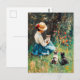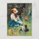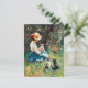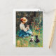Lady mit Hut mit Kätzchen im Gras spielen Postkarte