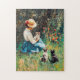 Lady mit Hut mit Kätzchen im Gras spielen Puzzle