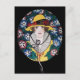 Lebhafte, klassische französische Art Deco High Mode Illustration. Porträt einer wunderschönen jungen Frau, die einen gelben Hut mit Blume trägt, Schwarz-weiße, grüne, blaugelbe Farbtöne. Cooles, modernes und künstlerisches Design.