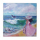 Lady on Beach mit Humpback Whale Keramik Tile Fliese