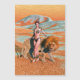 3D digitale Darstellung einer schönen jungen Frau und eines Löwen auf einem Wüstenlandschaft Hintergrund