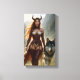 A Powerful fantasy artwork featuring a fierce, elegant horned warrior woman striding through a misty mountain valley alongside her loyal wolf companion. Bathed in warm, cinematic light, the piece blends strength, beauty, and untamed nature, making it a striking statement for fans of fantasy, myth and heroic feminine art.