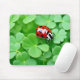 Nahes Auftragen eines Käfers auf grünen vierblättrigen Klebern