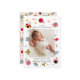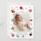 Niedliche Geburtsankündigungskarte mit einem senkrechten Foto Ihres Neugeborenen, in dem Ladybugs, Blume und Sterne dargestellt werden.