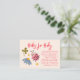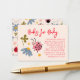 Niedliche Ladybug Thema Babydusche Anfrage Karte mit Darstellung des Insekts und der Wildblumen. Die Karte frage den Gästen, anstelle einer Karte ein neues oder gebrauchtes Kinderbuch einzuführen.