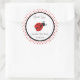Rundaufkleber für Babydusche mit ladybug-Thema und rot-schwarzer Farbkombination.