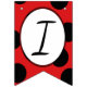 Das Party-Thema ist ein Party bunting Banner mit den Buchstaben "Happy Birthday" auf jeder Fahne und ein roter Hintergrund mit schwarzen Punkten und einem weißen oval umgeben jeden Buchstaben. Im Rahmen des "Ladybug"-Themas ist dies ein niedliches Design für Mädchen an ihrem besonderen Feiertag.