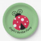 Ladybug mit White Dots Design Paper Tellern mit anpassbarer Text- und Hintergrundfarbe.