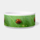 Diese phantastische Schüssel zeigt ein nahes Foto eines britischen 7-Spot-Ladybird, der auf einem Blatt sitzt. Das Foto wurde direkt über dem Ladybug mit Makrofotografie aufgenommen, was zu einem so detaillierten Bild führte, dass man alle Adern auf dem Blatt sehen kann, auf dem der Ladybug sitzt.