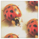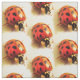 Dieses Tiergewebe weist ein sich wiederholendes Muster eines Ladybugs (Coccinellidae) auf, der auch als Ladybird, Damenkuh oder Damenkäfer bekannt ist, mit roten, orangen und gelben Farbtönen und schwarzen Flecken. Dieses Insekt ist ein bekannter Freund des Gärtners, der auf Blattläden und anderen Gartenschädlingen füttre.