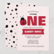 The coordinating back of the invitation is styled with scattered black polka dots on a matching blush background, thoughtfully designed to represent the spots of a ladybug. This playful pattern adds visual interest and creates a cohesive, double-sided look that feels extra special.