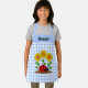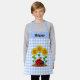 Diese Schürze ist mit einem lächelnden, roten Ladybug stehend vor einer Gruppe von gelben und orangefarbenen Sonnenblumen. Oben ist ein Monogramm Name für Sie zu personalisieren. Hintergrund ist blau-weiß Gingham. Eine großartige Schürze für Kinder!