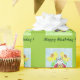 Ein kleines grünes Geburtstagsblatt mit der Kachelillustrierung eines Ladybugs, der ein Buch unter zwei gelben Blumen liest, und den Worten "Happy Birthday", darunter geschrieben. Perfekt für einen Geburtstag im Frühjahr :) © ArianeC Illustrations