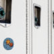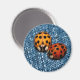 Ein Ladybugs-Paar auf Denim macht einen niedlichen Magneten.
