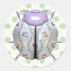 Ein lila Ladybug mit Blume und Spitzen-Sets auf weißem und hellgrünem Polka-Dot-Hintergrund.
