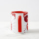Tasse, die mehrere Ladybugs auf einer Blume zeigt. Die Farben sind insgesamt rot, weiß und schwarz. Dieser Artikel enthält den Text für ein Baby-Dusche-Party.