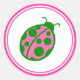 Ein rosa und grüner Ladybug krabbelt auf diesem Aufkleber! Verwenden Sie diese niedlichen Ladybug-Aufkleber als Umschlag Aufkleber, für Einladungen, Kunsthandwerk, Skrapbooks, Business, Zuhause, Büro, Schule, Klasse, etc.....Das Design stammt aus einer originalen Illustration.