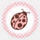 Ein rosa und braun gezogener Ladybug ist der Brennpunkt dieses Aufklebers. Diese niedlichen Ladybug-Aufkleber sind für Geschenke, Geschenktaschen, ein Scrapbook, einen Geburtstag, eine Babydusche, Kunsthandwerk, Umschlag Aufkleber, Einladungen, Schule, Business, Zuhause, Office, etc. geeignet.