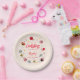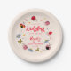 Niedliche Babyduschplatte zum Thema Ladybug, die niedliche rote und rosa Käfer mit Wildblumen illustriert. Im Text steht: "Ein kleiner Ladybug ist unterwegs."